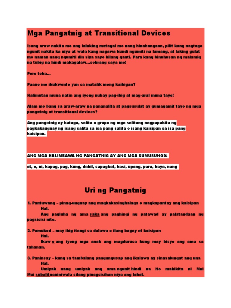 Mga Pangatnig At Transitional Devices